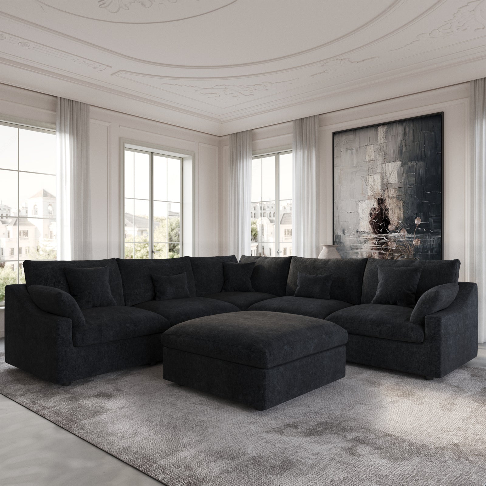Modular Floor Sofa Set, a contemporary seating solution designed for ultimate comfort and style ..Black